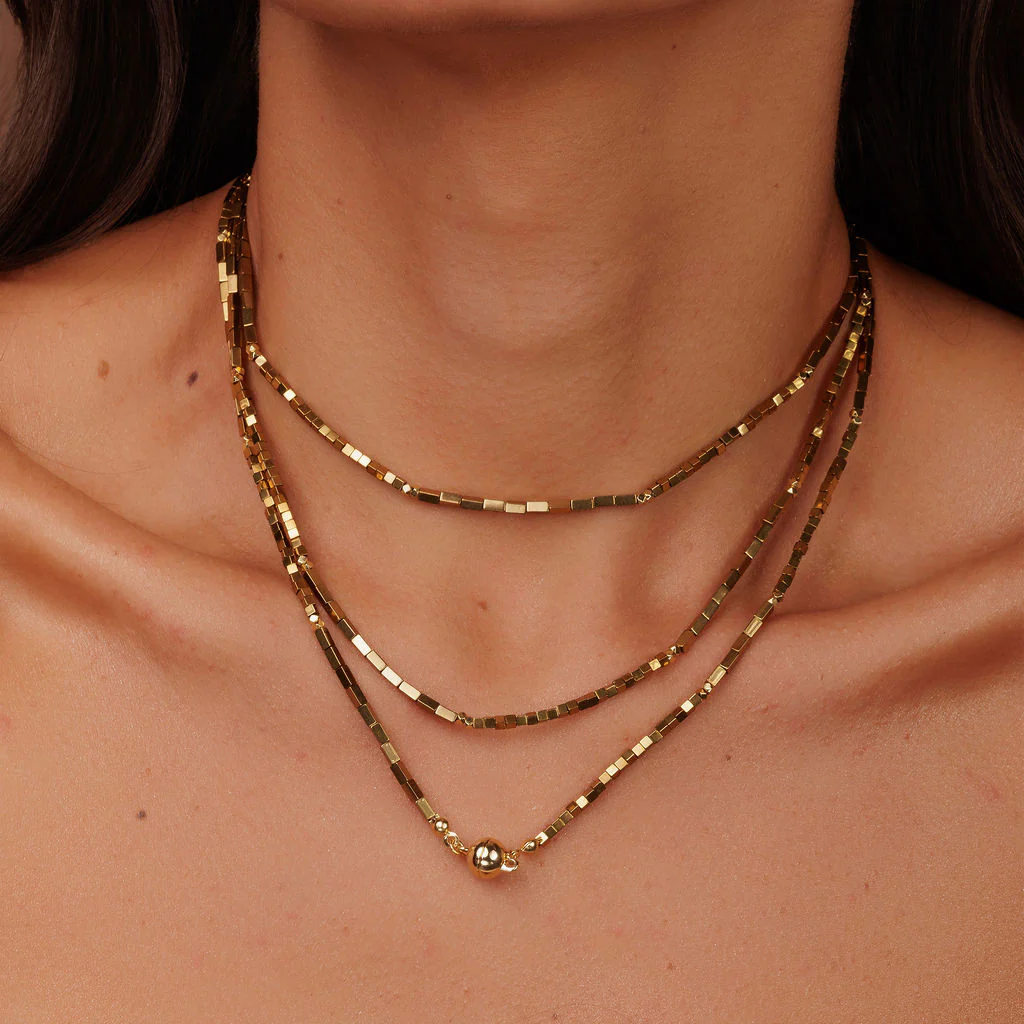 Nosso Colar Hematita Gold Pedrinhas Retangulares é uma peça artesanal que une a força e a elegância da hematita com o brilho atemporal do acabamento dourado. Seu design moderno e minimalista é perfeito para destacar seu estilo com um toque de refinamento, seja em momentos especiais ou no dia a dia.